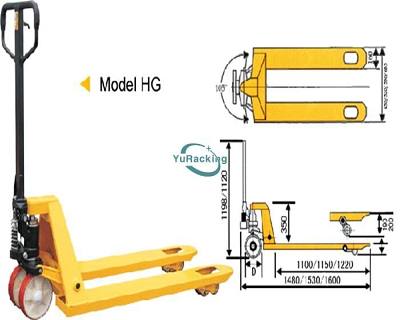 Pallet Jack, also called Hand Pallet Truck/Manual Electric Forklift/Manual Pallet Hydraulic Truck, used to move, load, unload pallet cargos by manual handling operations. As a reliable hand pallet truck manufacturer and supplier, YuRacking provides economical and effective pallet jack for our customers. Our hydraulic forklift is widely used in logistics, warehouse, schools, shopping malls, hospital, airports, etc.….