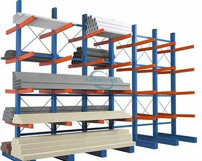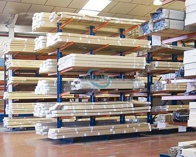Light Duty Cantilever Racking, designed in single sided (just storing goods in one side) or double sided (store goods from two sides) double storage capacity. Light weight cantilever racking is widely used to store the irregular items, such as: pipe, round tube, lumber, long products, shaped steel, etc., as its clear opening space in front of the rack, the forklift can load/unload the items to the rack easily.